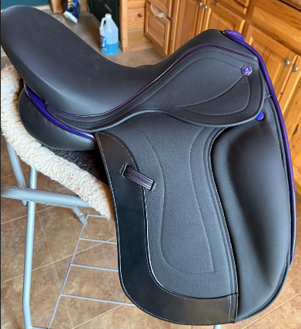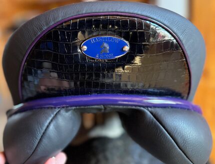 Custom-ordered Hastilow saddle requested by the 2025 winner. She applied the value of the free saddle toward this saddle with her purple show color. Gorgeous!