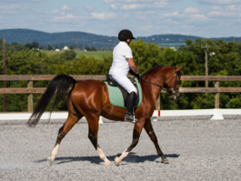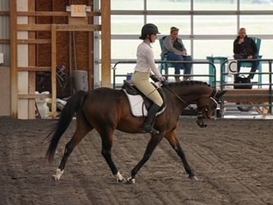 Trish DeRosa warming up on Beloved, coached by Katherine Nelson at Blue Horse Farm on April 23, 2017. Benefit for the Frederick County 4-H Therapeutic Riding Program.