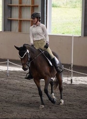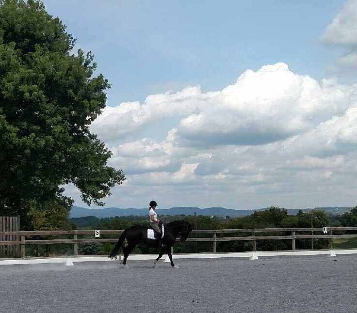 Jo Grigsby and Zantana warming-up at Blue Horse Farm on August 27, 2017. Benefit for the Hospice of Frederick County.