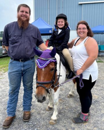 Harper, Paislee, Ashlie and Justin, with Pony Luna, Getting Ready for a Leadline Class at By Chance Farm
