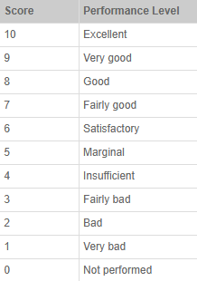 Using the same 0 – 10 scoring, the collective marks are evaluated as follows: