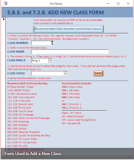 - Scoring form that automatically calculates the percentage and sorts each class by percentage, which simplifies placing of each class