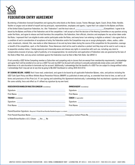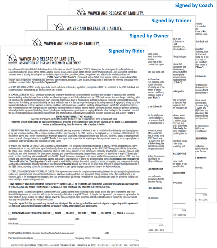 4. USEF Waiver and Release of Liability, Assumption of Risk and Indemnity Agreement (must be the current form).