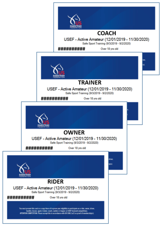 5. Proof of Rider/Owner/Trainer/Coach SafeSport Training (USEF members 18 years old or older).