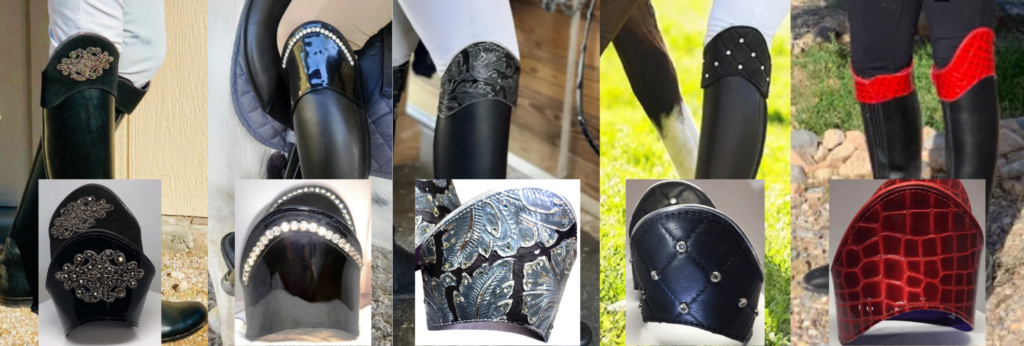 This photo shows how the boot crowns are made. They have a clip that fits over the boot on the outside of the leg. They also have strong Velcro located on the inside of the leg.